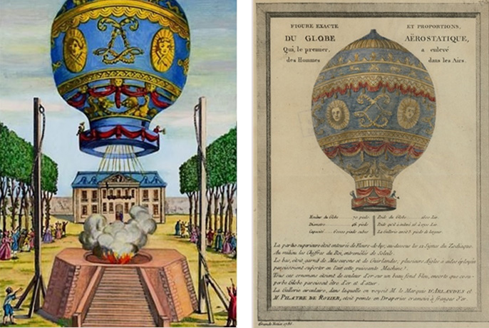 1783년 11월 21일 그 열기구에 피아드레 로지에르(Pilatre de Rozier)와 마르키즈 아르랑데(Marquis D‘Arlandes)란